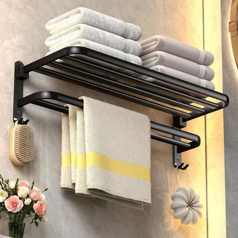 Modern Svart Badrumshylla med Integrerad Handdukshängare